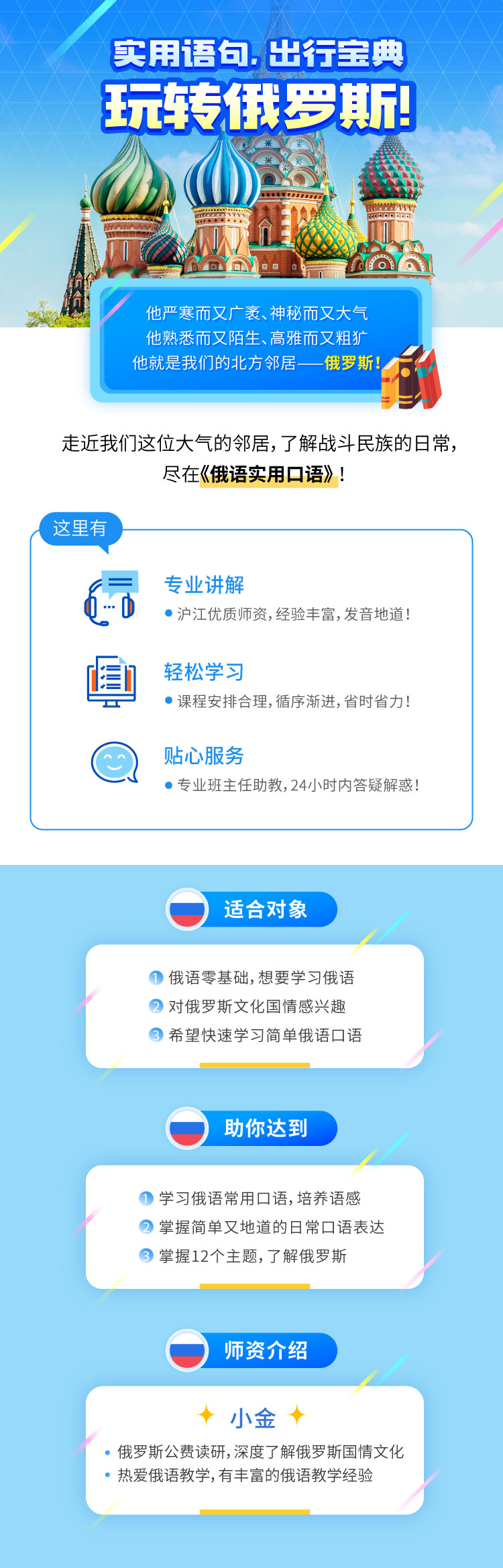 这个课好啊,老师讲解生动,规范,详细。体验到了俄罗斯的异地风情。