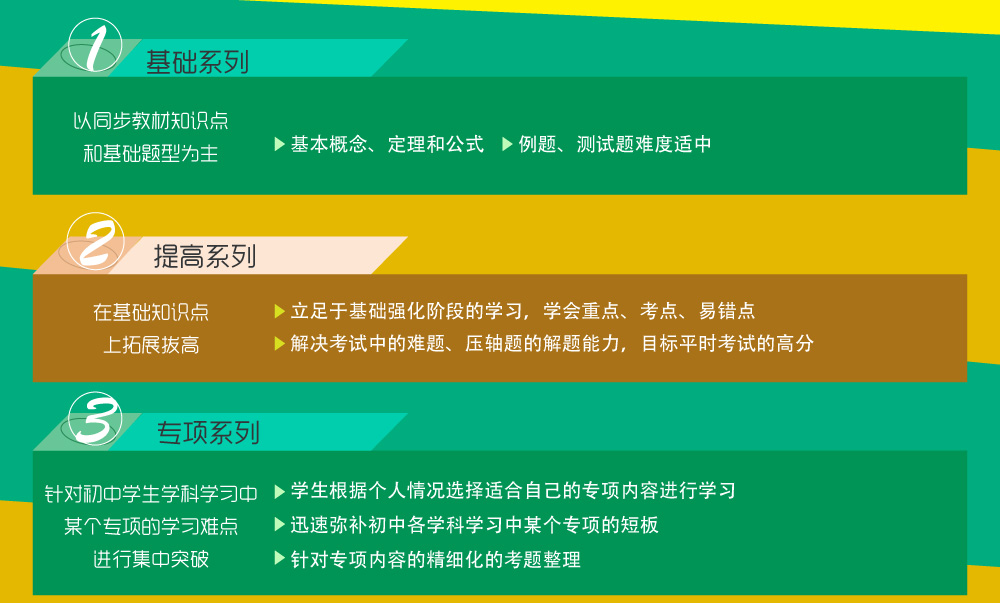 (2)划分3个系列,“基础——提高——专项”循序渐进,梯度上升