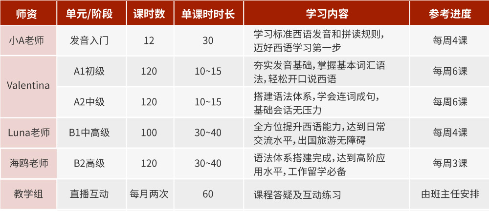 本课程采用沪江西语教学组精心研发的内部讲义,进班后提供电子版下载,学员无需购买教材。