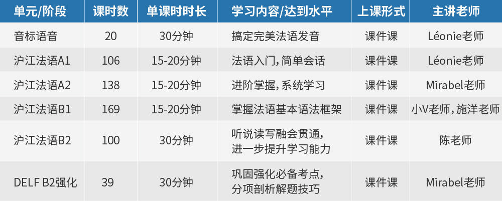 本课程采用用由沪江法语教研团队结合国外原版教材和多年教学培训领域专业经验,精心研发的独家讲义,无需自备教材,上课前会通过电子讲义的方式免费提供。