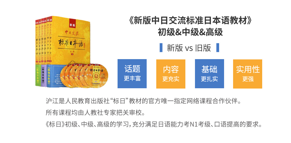 课程全新升级改版,标准日本语初级课程,升级为沪江网校名师葱花老师录制的精讲强化课程。
