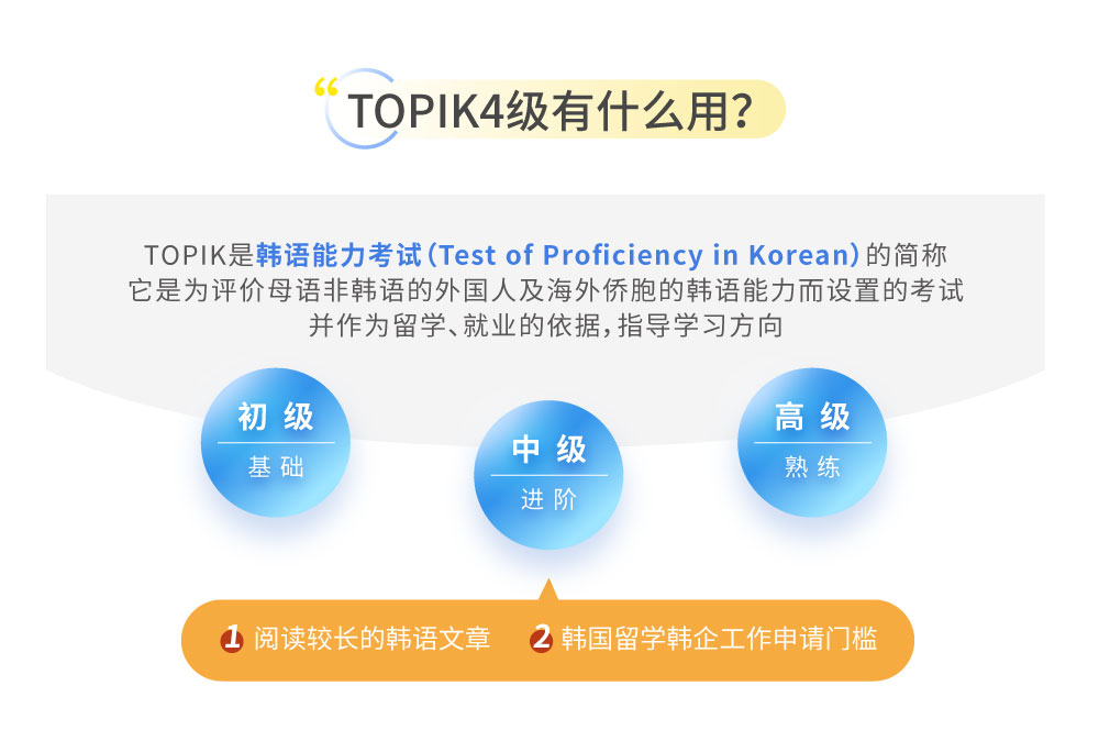 4.读写能力全面提升,70%理解无字幕韩剧,掌握日常生活及工作写作需要。