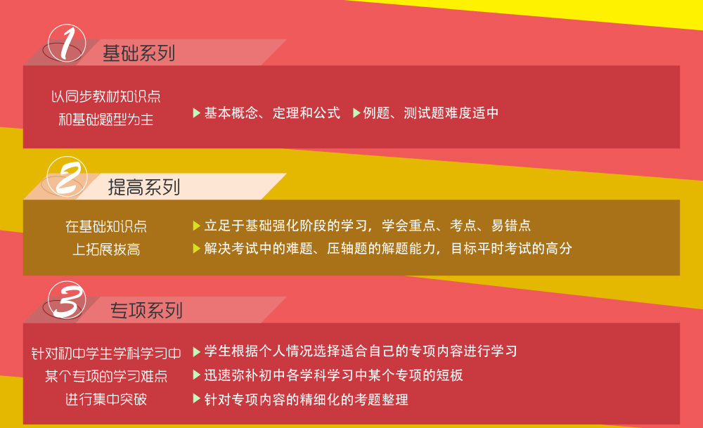 (2)划分3个系列,“基础——提高——专项”循序渐进,梯度上升