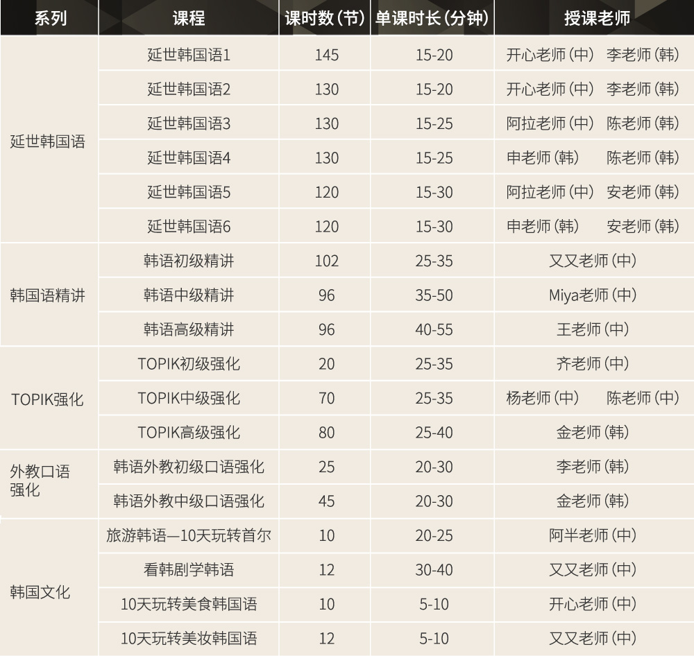 TOPIK强化课、外教口语课和文化课均使用沪江自编讲义,无需使用教材,跟随课件学习即可。