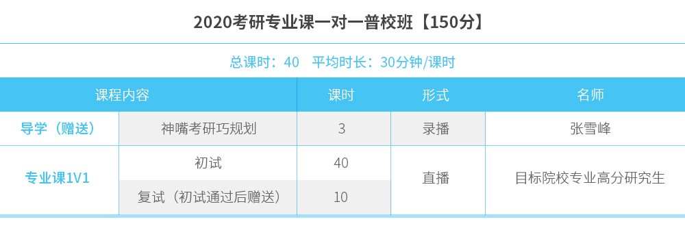 2020考研专业课一对一普校班【150分】
