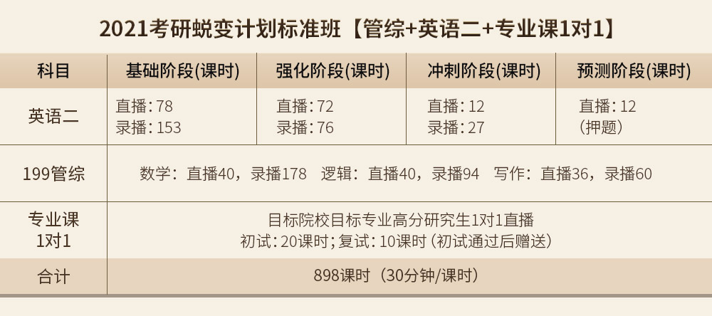 开课时间1.如果学员未通过初试或调剂其它院校专业,赠送的复试10课时则不提供;