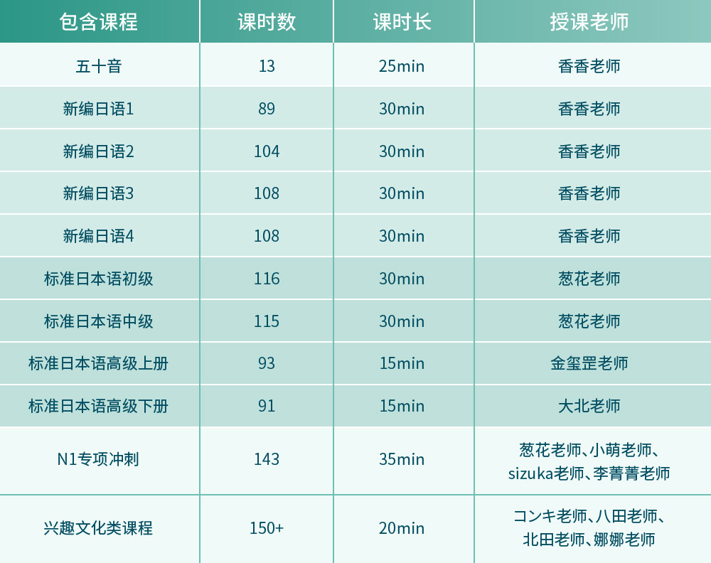 开课时间新编日语第2册第3、4单元内容、N1词汇专项课内容,19年6-8月依次发布,其他内容开班后可即学。