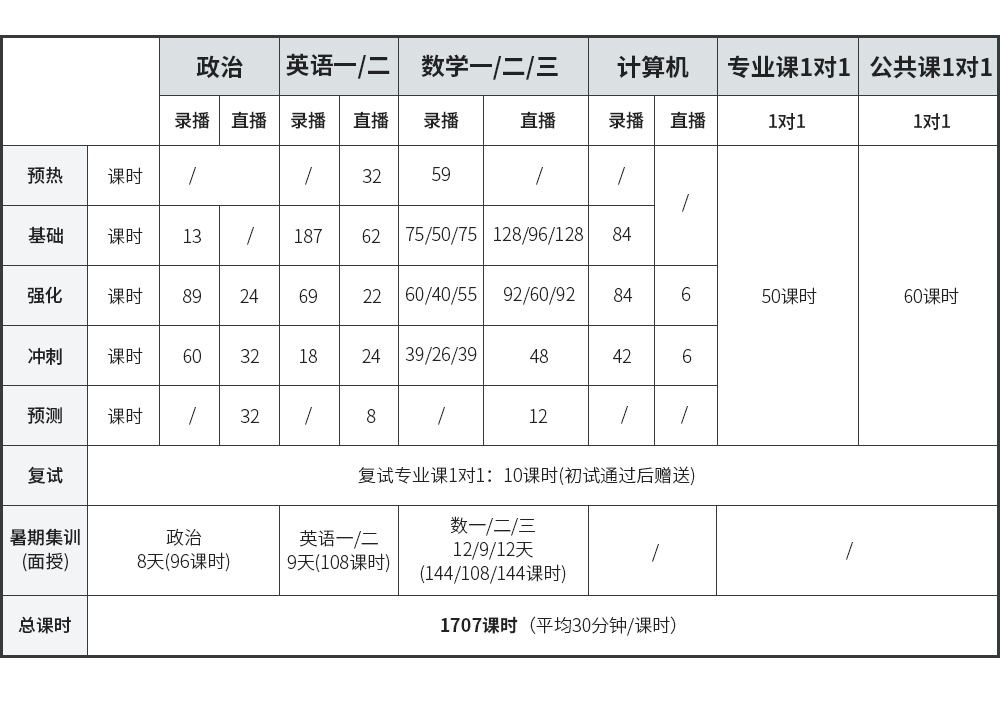 2.如果学员未通过初试或调剂其它院校专业,赠送的复试10课时则不提供;