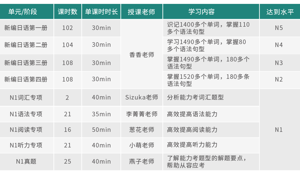 2、掌握8000-10000单词,800条语法,能够熟练使用日语,具备N1应试技巧,顺利通过N1级别考试;