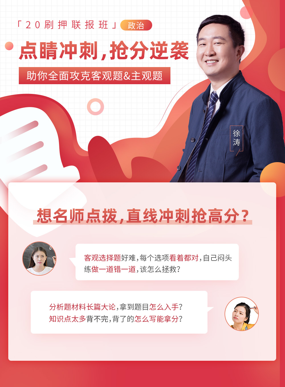 名师徐涛点睛密训,助你全面攻克客观题和主观题