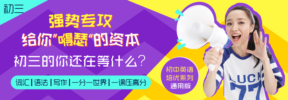 《初三英语(通用版)综合培优【全年班】》,是专门针对初中三年级阶段的学生,不分教材,按专项能力划分,从词汇、语法、写作,渐进式难度,无形中轻松提升!海量实例,精心挑选,细致讲解,助力综合运用!