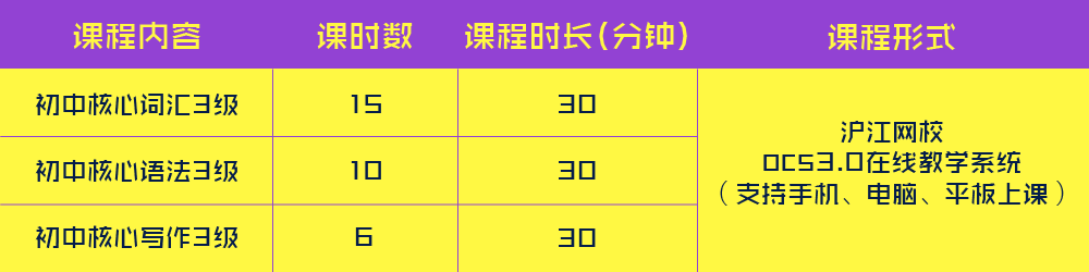 是的。本课程是通用版,不分教材,是按专项能力分级的。初三学生必须掌握的词汇、语法、句型、写作,均在本课程里有涉及,授课内容只会多不会少。