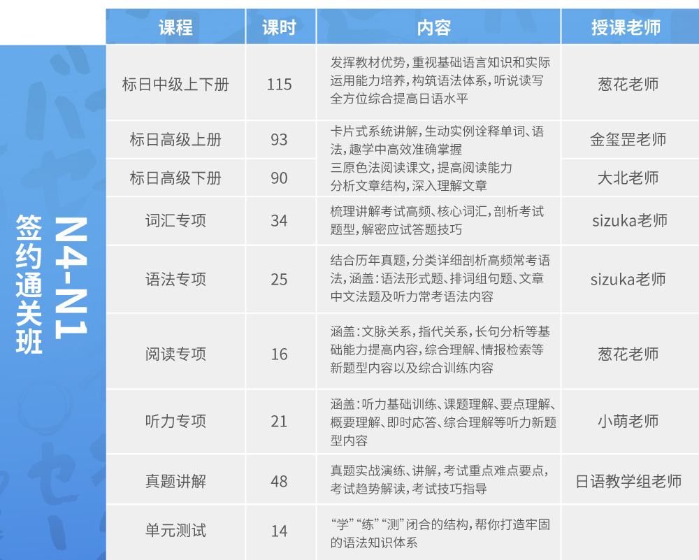 3. 学完之后具备学习JTEST(A-D)或日语口译笔译课程的基础。