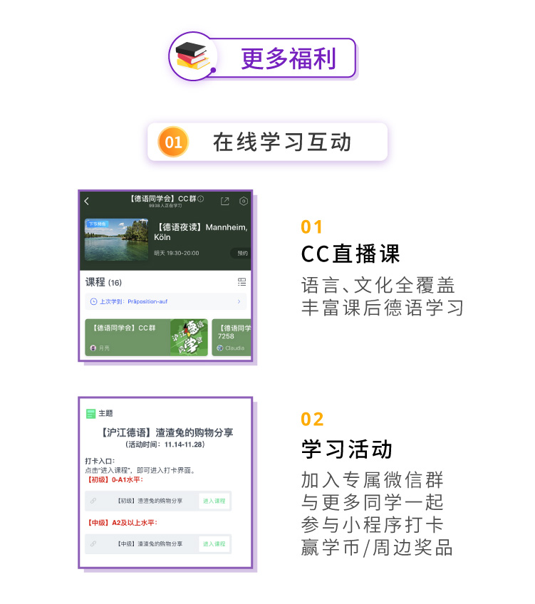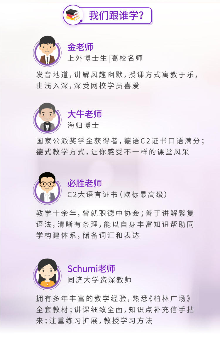 老师回复:感谢同学的认可~我们致力为同学提供更好的德语学习体验~以后要好好学习~我们9月正好有开学季活动,介绍老学员来会有额外福利,欢迎咨询我们课程老师:https://class.hujiang.com/crm/zx?jId=39