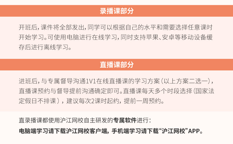 短期班换班规则:纯录播课或课程中含录播课的短期班课程(短期班指课时数为45课时,含45课时)自课程开班之日起15天内可接受换班申请;纯直播课课程或纯直播短期班课程(短期班指课时数为10课时,含10课时)自课程开班之日起15天内可接受换班申请。超过上述时限申请换班的,沪江不予受理。
