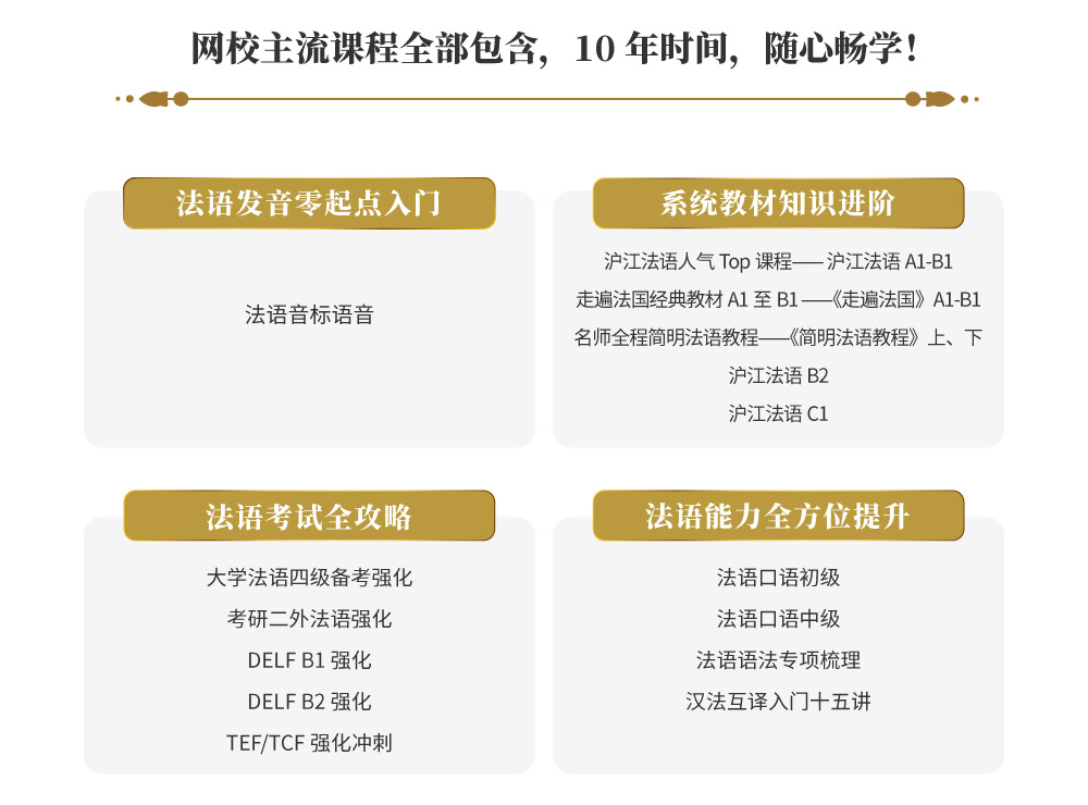 4.有法语基础但水平不明确,希望从任意阶段开始继续学习的学员;