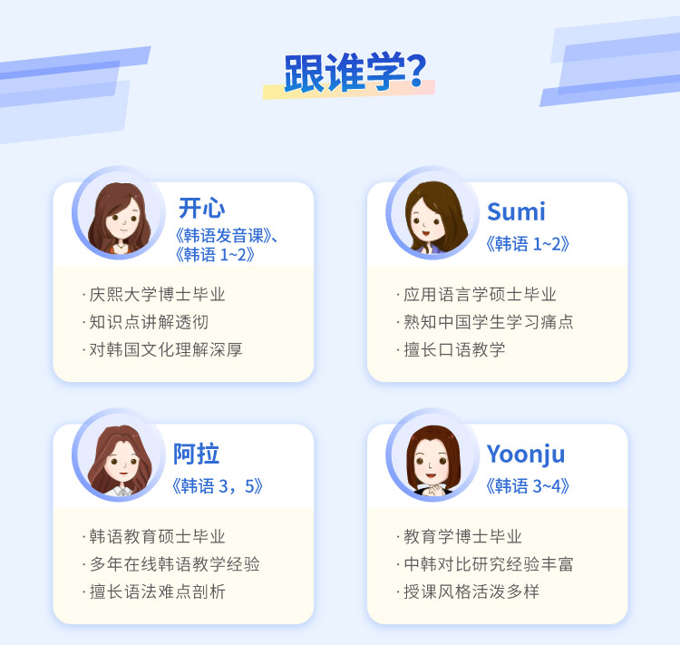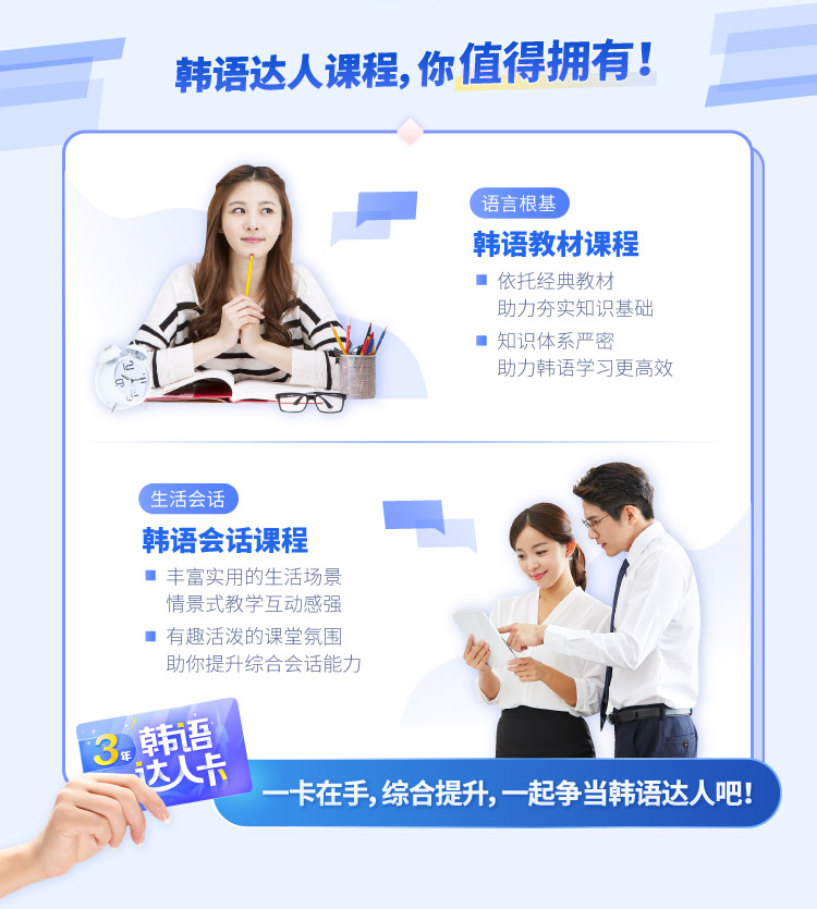 一卡两套课程,助你综合提升,一起争当韩语达人吧!