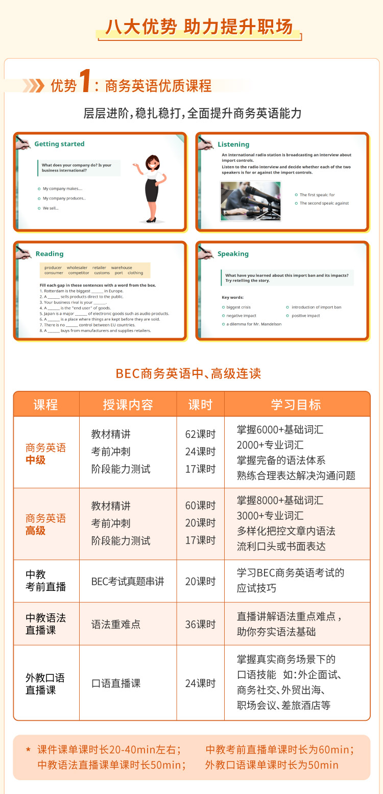 BEC商务英语中-高连读全程旗舰班【含外教口语课】