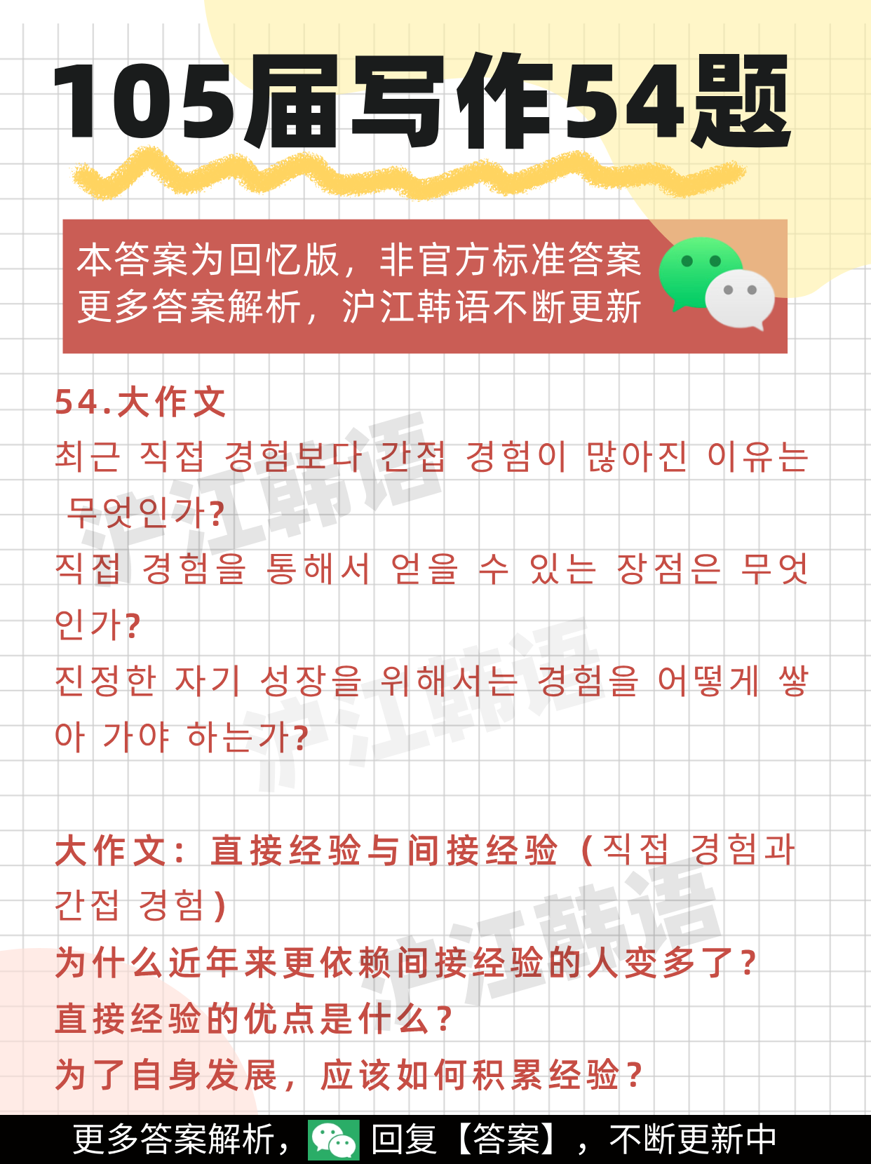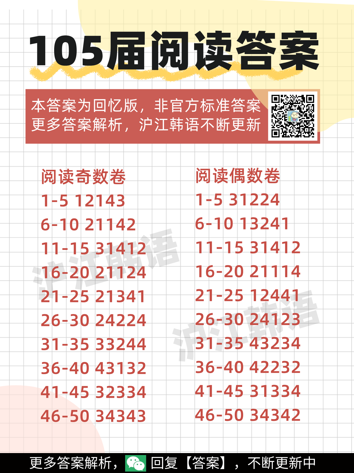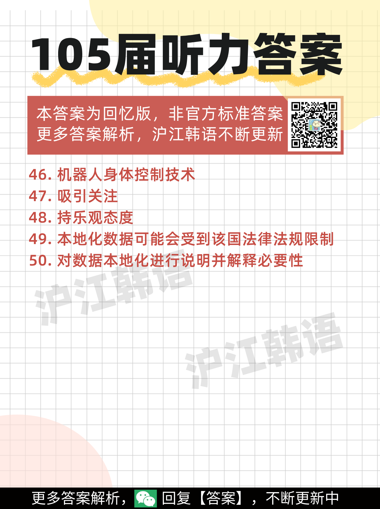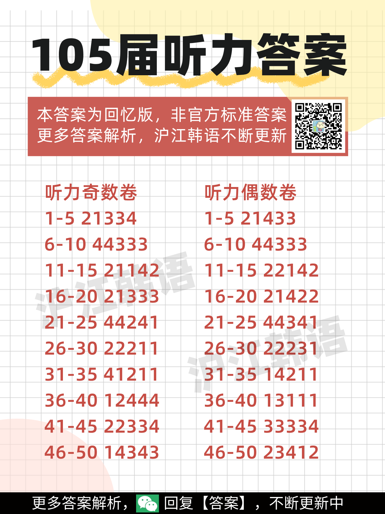 105届韩语TOPIK考试于2026年4月12日举行,沪江韩语教学团队将在考后进行“回忆版”答案解析。